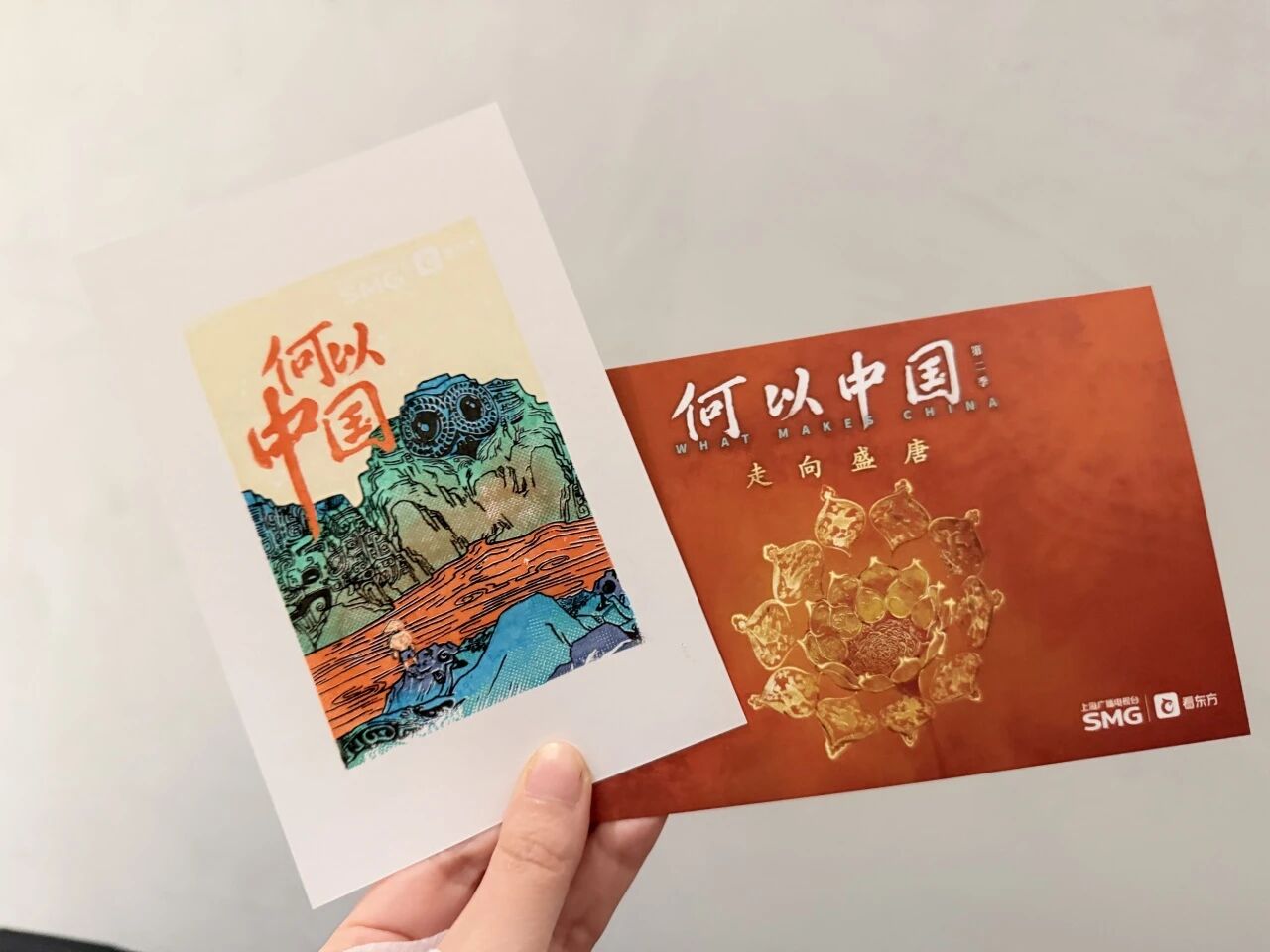 这场分享会不仅是思想的碰撞,更是一场沉浸式的文化体验。现场大屏播放的《何以中国》第一季4K精彩片段、嘉宾们提供的考古现场珍贵画面以及签到台陈列展示的样书,营造出浓厚的考古文化氛围;看东方定制帆布袋、《何以中国》第二季主题明信片搭配彩色套印印章的专属福利,成为观众们珍藏的“文化记忆”,不少人在社交平台分享这份独特体验,引发二次传播热潮。