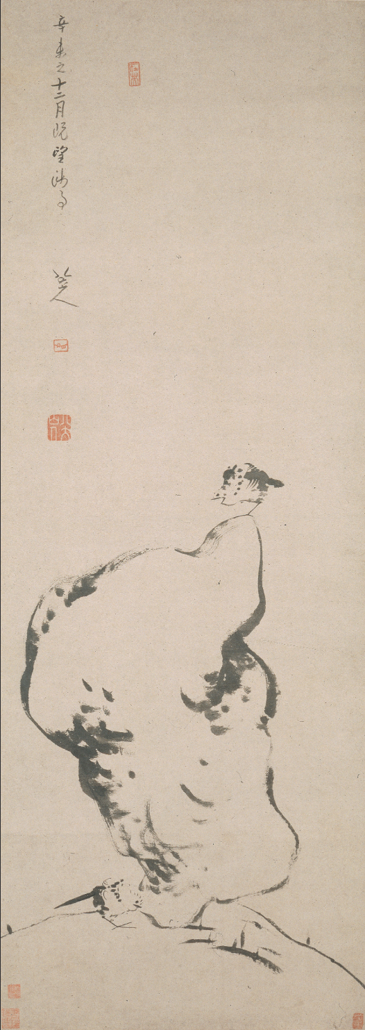 朱耷画幅上常常可以看到一种奇特的签押,像一鹤形符号。其中一种说法是以崇祯帝忌日“三月十九”四字组成,借以寄托怀念故国的深情。
