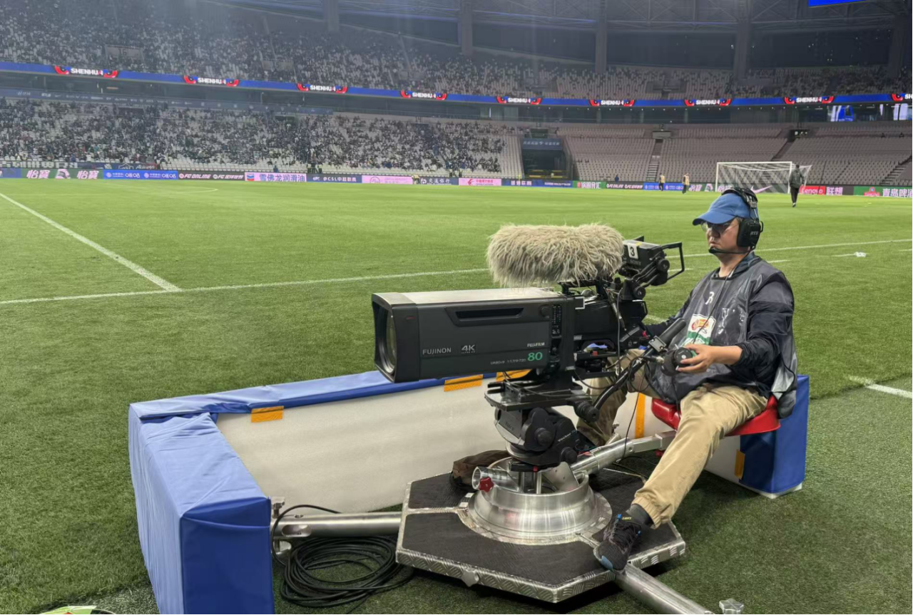 赛场之内,球员拼抢每一寸草皮。赛场之外,咪咕中超公共信号团队与上海广播电视台技术中心(上海东方传媒技术有限公司)携手,以电影化制作、特种摄像系统、AI智能慢动作、三维沉浸声四大技术革新,为本次德比提供公共信号与视听支持。