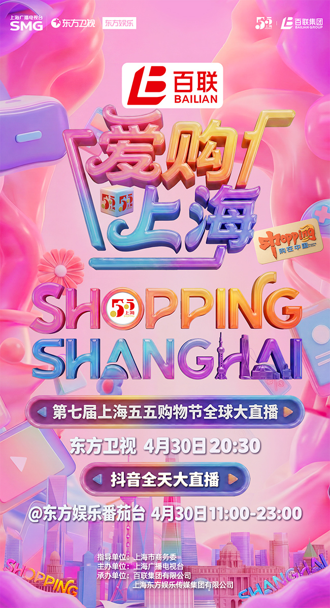由上海市商务委指导、上海广播电视台主办、百联集团冠名承办、SMG东方娱乐承制的“五五购物节全球大直播”,将于4月30日重磅登陆东方卫视及全媒体矩阵,大屏小屏不间断直播,提前锁定今夏最潮“上海定制”玩法。