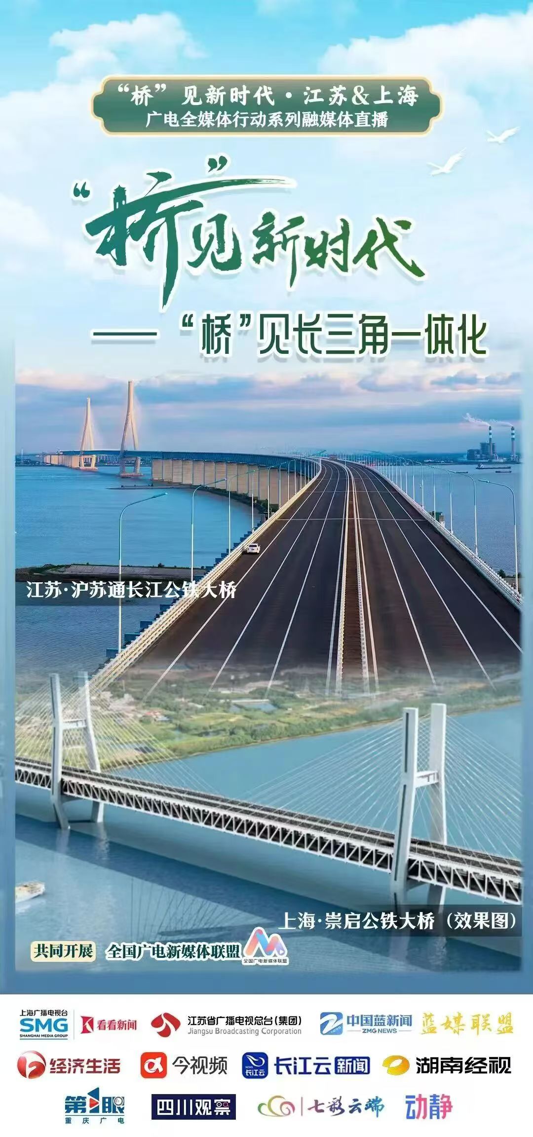 2024年9月13日至10月10日,长江经济带沿线11省市广电媒体联合开展 “桥” 见新时代广电全媒体行动,上海广播电视台参与其中。此次全媒体行动通过10场主题直播、11组系列报道,以桥为媒、循桥而行,全方位展现国家发展成就。截至2024年10月10日,活动总传播量超5.5亿,微博话题登榜全国热搜榜第三,微博话题总阅读量超5400万。