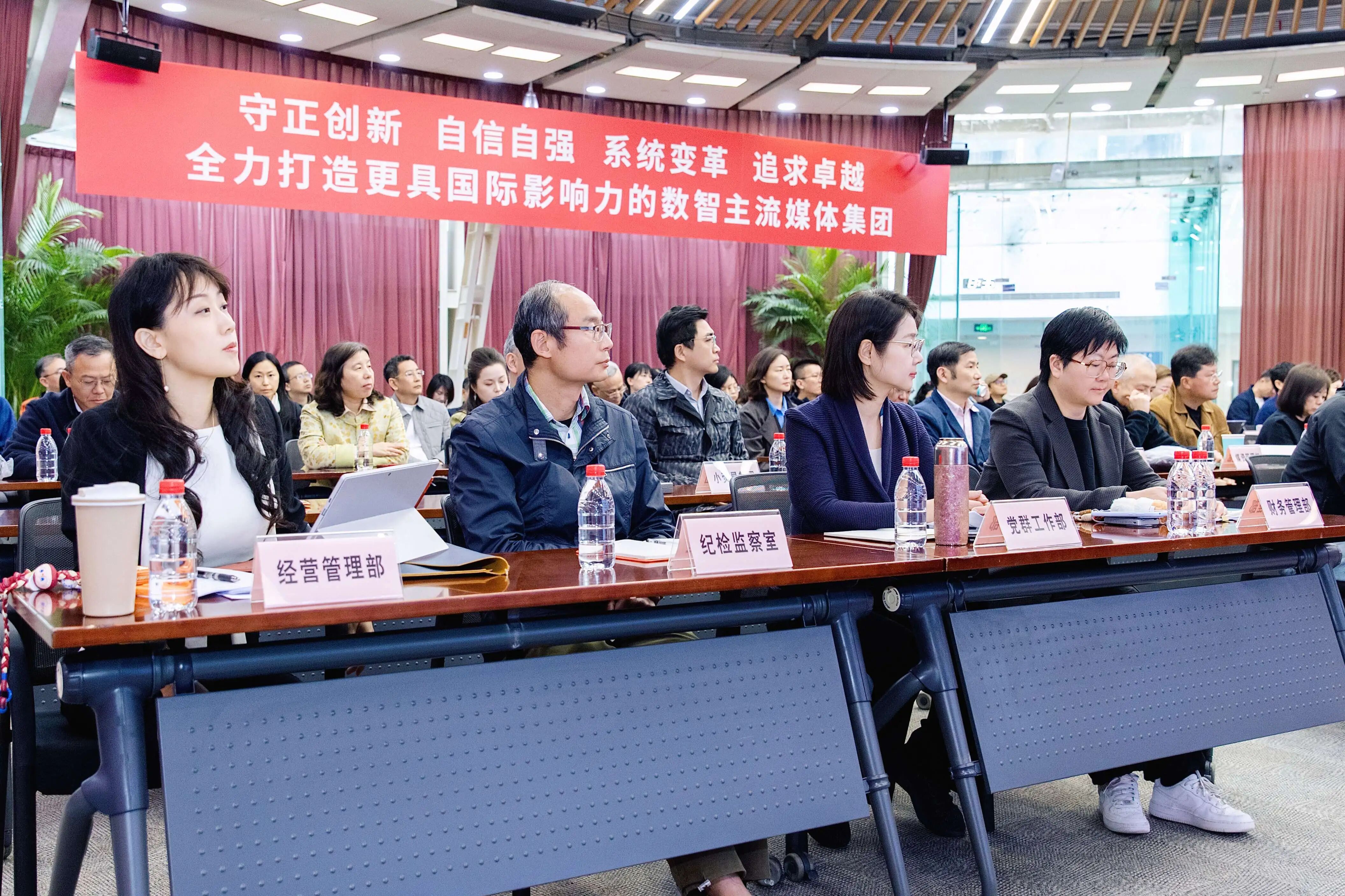 台(集团)领导班子成员,台(集团)下属各部门、单位中层干部,文广演艺所属文艺院团党政负责人参加会议。会上,台(集团)办公室、人力资源部、经营管理部分别通报了巡视整改、总部公开选拔、“十五五”规划编制等专项工作情况;五星体育围绕近期数智化改革转型作交流发言。