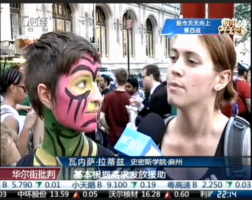 在10月10日的第一期特别节目中,第一财经驻纽约、华盛顿、伦敦记者和特约记者先后通过卫星或电话发回来自示威现场的第一手情况。经济学家华民、连平、肖炼分别在上海、北京演播室就当下在华尔街发生的占领示威活动,从经济学角度透过现象看本质。