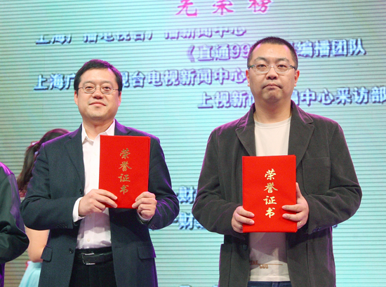 大会还宣布和表彰了第21届中国新闻奖、第20届上海新闻奖,以及“走转改”活动优秀项目、优秀作品、先进典型的获奖作品和个人。上海广播电视台捷报频传,广播新闻中心记者陆兰婷获得全国优秀新闻工作者称号,电视新闻中心记者杨璐蔚荣获全国汶川地震灾后重建先进个人称号,此外还获得了4个中国新闻奖、25个上海新闻奖、7个“走转改”活动优秀奖。