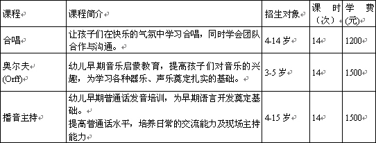 2012年,上海少儿广播合唱团、上海少儿广播剧团携手开设以下课程: