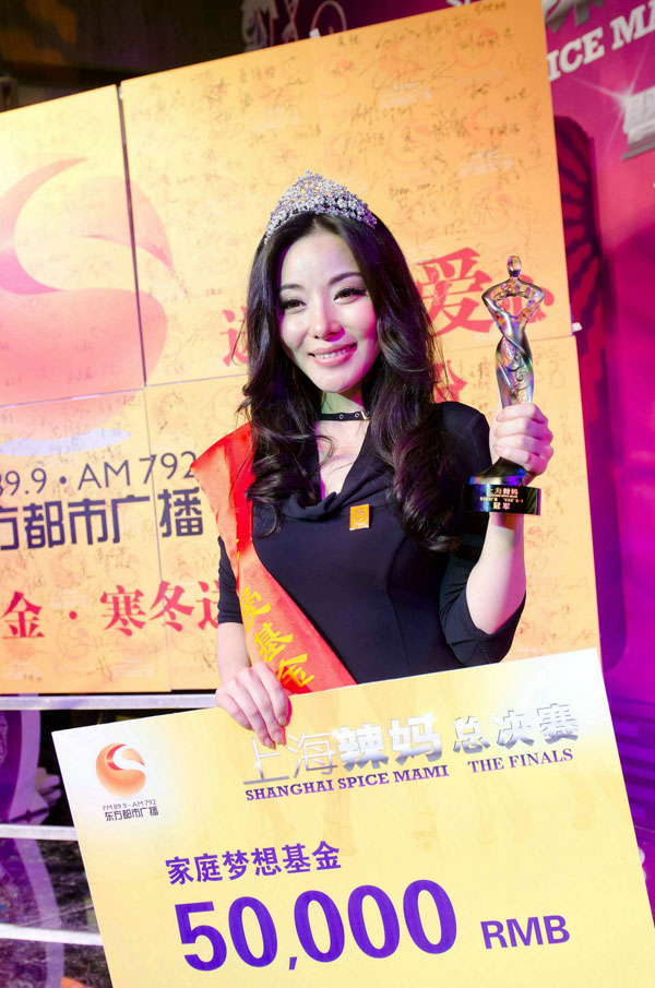 在闵行区公证处的见证下,经评委现场打分,张琦获得了本次“上海辣妈”比赛的冠军,获颁5万元的“家庭梦想基金”,帮助她实现参赛最初许下的家庭梦想。同时,进入决赛的十位“辣妈”还获聘成为“东广爱基金”2012爱心大使,与东方都市广播一起投入到慈善事业中去,呼吁更多的人奉献爱心
