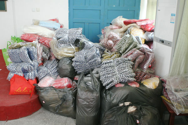 一下飞机,大家都忙活了起来,从清点物品到打包装箱,当十多个装满御寒用品的大麻袋呈现在眼前时,已经临近深夜,但是大家丝毫不显疲倦,眼前浮现出的是孩子们裹着御寒用品时那灿烂的笑脸。