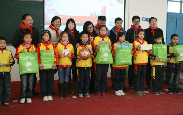 东方广播公司主持人李欣、阿彦、晓蕾、丁丁在12月27日晚参加SMG“名、优、新”主持人颁奖典礼后,顾不得疲惫劳累,12月28日清晨,在东方广播公司副总经理李珂的带领下,赶上早班机,出发前往四川广安,慰问东方小学的孩子们。