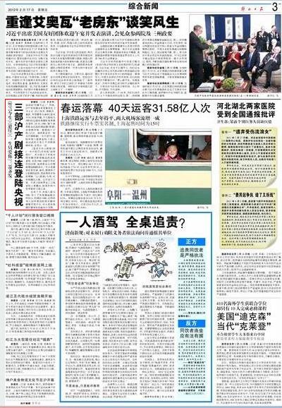 俗话说“好事不过三”。然而,沪产电视剧龙年喜事连连。2月4日,刘江执导,郭晓冬、姜武、李雪健等主演的《誓言今生》央视开播,不久即成为同时段全国电视剧收视率排名冠军。10日,SMG旗下尚世影业出品的谍战剧《悬崖》也亮相央视一套晚间十点档。12日,尚世影业另一部当代情感剧《一生只爱你》登陆央视八套黄金档。3部上海出品的大戏几乎同期亮相央视,还是头一回。