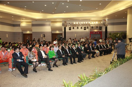 启动仪式上,上海市副市长沈晓明和全国政协常委、上海科技馆理事长左焕琛共同点亮了象征环保心愿的“生命之树”,代表着通过全球人类的倡议和行动点燃未来的绿色希望。市人大城建环保委主任委员甘忠泽、上海市科学技术委员会主任寿子琪、上海科技馆馆长王小明、市经信委副主任尚玉英、市环保局副局长孙建、市绿化和市容局副局长陆月星、宝钢集团董事会秘书总经理助理王力以及中国环球新闻工作者协会秘书长、亚太环境记协副主席刘国正、中国国际广播电台副台长夏吉宣、上海广播电视台党委书记王建军、上海广播电视台副台长李蓉等,分别作为政府支持单位、媒体发起单位、环保企业代表出席了本次活动,从各自职责角度出发将环保倡议和绿色希望写在“绿叶”上,并亲手张贴在“生命之树”上。