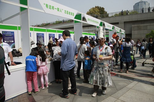 多家环保企业、公益组织以及环保达人在活动外场设摊、与市民进行交流:与 “绿色账户”公益组织的居民模特队一起把牛奶盒回收所制的环保服饰穿在身上,与欣耕工坊的志愿者们学习如何妙用咖啡渣做沙画、与“有这样一群人志愿者家园”的成员们一起欣赏废报纸剪裁出来的工艺品、与公益组织“飞扬华夏”一起分享如何在办公室让植物开花结果的经验、与公益组织“根与芽”一起讨论去内蒙古沙地植树的计划……让市民近距离体验身边力所能及的环保小事。