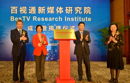 中共上海市委宣传部副部长宗明,上海广播电视台台长、上海东方传媒集团有限公司总裁、百视通新媒体股份有限公司董事长裘新,国家广电总局广播科学研究院副院长高少君,上海市闵行区副区长蔡小庆为研究院成立揭牌。