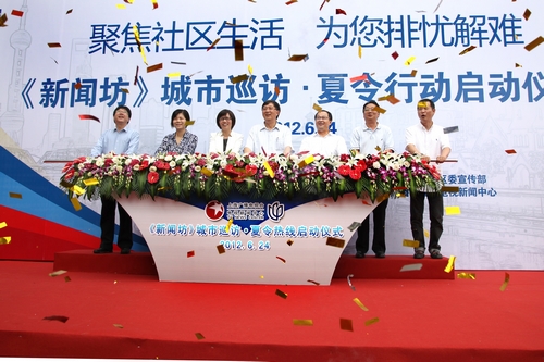 6月24日是《新闻坊》改版播出十周年的纪念日,《新闻坊》“城市巡访•夏令行动”启动仪式在普陀区图书馆广场上举行。市文明办正局级巡视员陈振民向市民巡访员和巡访记者代表颁发巡访证,并宣布《新闻坊》2012年“城市巡访•夏令行动”出发。上海广播电视台党委书记王建军向17家区县记者站代表交授电视新闻中心赠送的新一批“《新闻坊》采访车”钥匙;中共普陀区委常委、宣传部长单少军,上海广播电视台副台长李蓉,上海广播电视台台长助理兼电视新闻中心主任袁雷,电视新闻中心党委书记诸培璋,以及各区县电视台的有关领导参加了启动仪式。