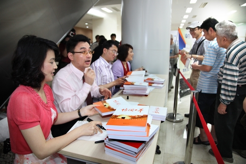 “我和《新闻坊》的故事”征文活动的30位获奖者也在文艺汇演舞台上揭晓,其中10位观众的作品被收录到了《坊间十年》一书中。活动现场,编辑、记者、主持人还和观众展开互动,签名售书,听取大家对《新闻坊》节目尤其是刚刚推出的周六沪语版节目的意见和建议。