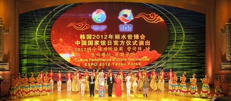 2012年韩国丽水世博会于5月12日至8月12日在韩国美丽的海滨之城丽水隆重举办。丽水世博会与上海世博会不同之处在于它是认可类(专业性)世界博览会,“生机勃勃的海洋及海岸:资源多样性与可持续发展”是本次世博会的核心主题。有着上海世博会历练的大型活动中心导演团队再次挑起重任,成为本次丽水世博会中国参展方重大演出活动的创制团队,这其中包括《中国国家馆日官方仪式演出》、《上海周开幕式演出》和《上海周专场文艺晚会》等在内的多场演出活动。