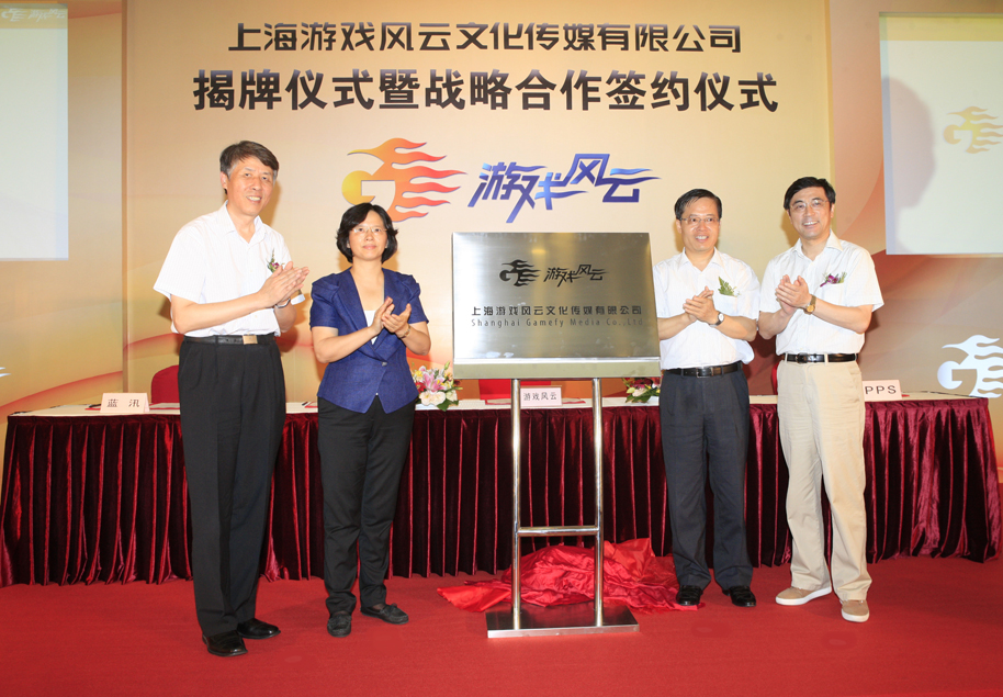 2012年8月12日星期日下午17时, 上海东方传媒集团有限公司(以下简称“SMG”)旗下成员机构,上海游戏风云文化传媒有限公司(以下简称“游戏风云”)在上海市杨浦区复宣酒店举行了隆重的揭牌仪式。中共上海市委宣传部副部长宗明,中共上海市杨浦区委副书记、区长金兴明,上海市体育局副局长陈一平,上海广播电视台副台长林罗华,上海文广互动电视有限公司总经理史支焱,上海游戏风云文化传媒有限公司总经理陈剑书以及暴雪娱乐、PPS、世纪天成、蓝汛等业界合作伙伴公司高层出席仪式。