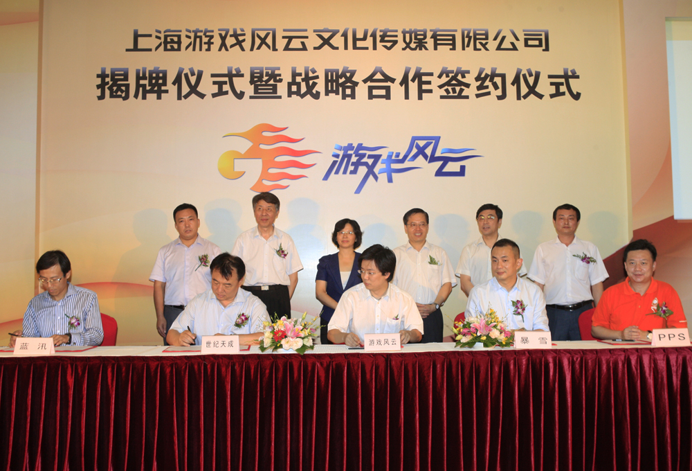 揭牌仪式过后,上海游戏风云文化传媒有限公司总经理陈剑书和暴雪娱乐大中华区总经理戴锦和、上海邮通科技有限公司董事长曹年宝、上海众源网络有限公司总裁徐伟峰、北京蓝汛通信技术有限公司副总裁霍涛现场签订了战略合作协议,正式达成战略合作伙伴关系。在今后的合作中,游戏风云将联合更多的战略合作伙伴,进行多方面深度合作,力求实现共赢,为游戏文化产业的繁荣与发展做出积极的贡献。