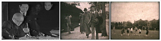 民间影像还有一个很大的特点就是这些影像都出自私人纪录。纪录的内容多与个人和家族的日常活动有关,参与集会、出外郊游、婚礼、寿诞等家庭特别纪念日等。并且大多都是私人持有,一般持有人多为民间收藏家,或者是影像主人的后代。我们本次的征集活动得到了不少影像持有者的支持、捐赠。上世纪三十年代上海名流王一亭的后人向资料馆捐赠了纪录王一亭寿宴的完整版本,这部名为《王一亭七十寿庆》的影片,全片长45分钟。出席其寿宴的都是当时上海滩上的名流和政要。虽是私人影像,但在这些影像中能发现很多著名的历史人物:梅兰芳、黄炎培、刘海粟等,能发现这些人物中的其中一人的活动影像已属非常难得,更何况是一个场合中这些人物都同时出席,它的影像价值不可估量。
