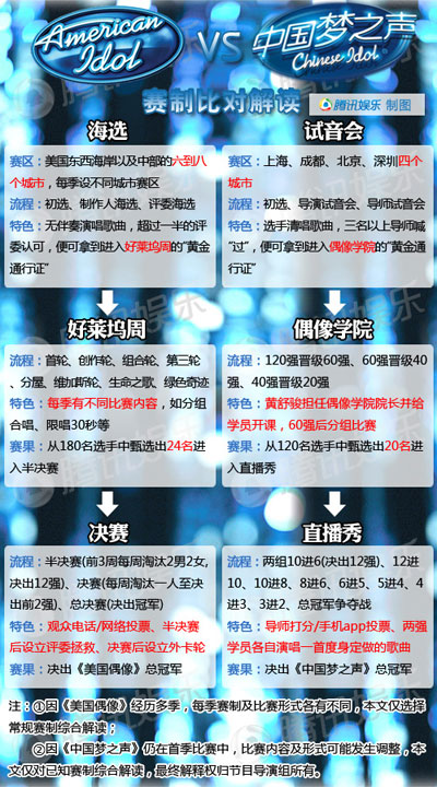 一张图解读《美国偶像》与《中国梦之声》赛制差异