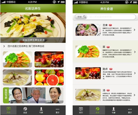 名医APP首页 名医APP菜谱页