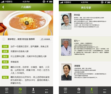 名医APP菜谱详细页 名医APP专家页面