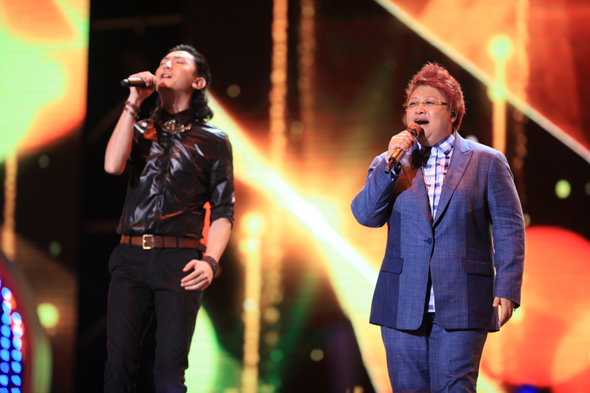 《中国梦之声》导师阵容中,除了两大天后,导师黄晓明的唱功也在节目中有过精彩呈现,经过电影主题曲和“梦之声”舞台的屡次进阶,导师黄晓明站上此次慰问演出的舞台,也尽显歌星风范,一首《爱的就是你》大展清新唱功。而在“梦之声”试音会上得到导师黄晓明力挺,并当场与黄晓明换装的山东农民李路路也来到现场,与偶像黄晓明同台演唱,两人共同演绎的《音浪》和《痴心绝对》两首歌,激情与深情碰撞,成为当晚最吸引眼球的曲目之一。