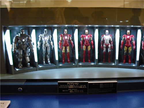 展区内的背景墙标有八种不用颜色,以提示观展进入历史、英雄人物、少女系列、特摄、机甲、生物等不同主题区域。