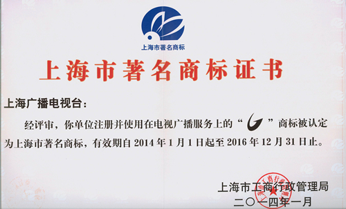 日前,上海市工商行政管理局公布了2013年上海市著名商标认定结果,我台申报的“SMG”、“G”(即:五星体育)获得上海市著名商标荣誉称号。