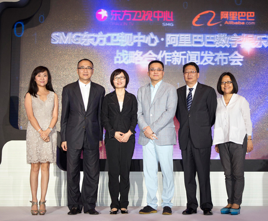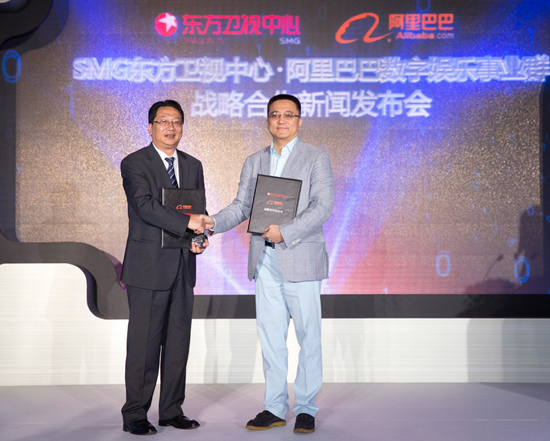 SMG东方卫视中心与阿里巴巴数字娱乐事业群6月10日下午在明天广场JW万豪酒店正式宣布签署战略合作协议。这是文化产业和电商平台的一次强强联手,双方将在内容合作、天猫东方卫视旗舰店、技术及硬件开发、游戏开发、娱乐宝等五大领域展开全面合作。