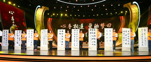 1月31日晚,由东方卫视中心创制的“心手相连 爱的梦田——2015‘蓝天下的至爱’慈善之夜”在东视剧场举行。晚会描绘出上海社会各界致力于慈善行动的爱心人士的“群像”,现场为“万人捐、帮万家,让特困家庭过好年”项目捐款。