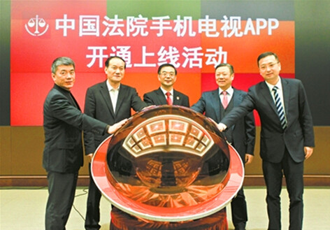 为进一步深入推进司法公开,努力适应移动互联网时代信息传播需求,打造全面覆盖移动终端领域的人民法院信息传播新平台,最高人民法院新闻局与上海广播电视台开展深入合作,共同筹建的“中国法院手机电视APP”于2月27日举行开通上线仪式。最高人民法院院长周强、上海市委宣传部副部长燕爽、上海市委政法委副书记王教生、中国电信集团公司董事长王晓初、上海文广集团副总裁吴斌出席仪式并共同点亮启动球。
