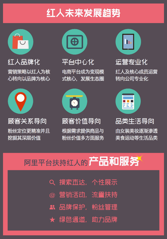 而据淘宝方面透露,未来平台将会从品牌保护、粉丝管理、产品支持及流量补充等多方面对于电商网红进行全面支持。