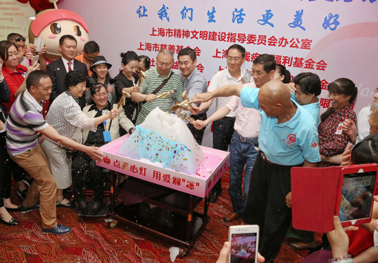 活动尾声,随着嘉宾、志愿者和患者代表共同举起铁锤,象征着阻碍“渐冻人”患者融入社会的“冰山”被砸碎,破冰的那一瞬间,破除了捆绑着“渐冻人”的坚冰。
