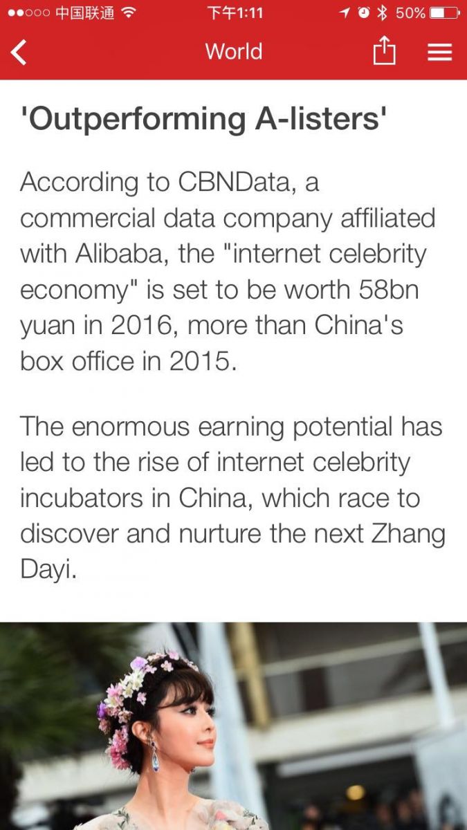 8月1日,BBC发表文章《网红:中国网络红人产值巨大(Wang Hong: China's online stars making real cash)》,文中两处引用了第一财经商业数据中心(CBNData)此前发布的《2016中国电商红人大数据报告》对于中国网红经济的预测及解读。自今年5月发布以来,CBNData此份报告已引发了包括BBC在内的数百家国内外媒体关注。
