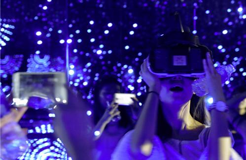 尾厅“链接”,在富有童趣和科幻色彩的互动多媒体影像墙上,观众可以了解大数据、互联网、智能硬件等技术在未来人们衣食住行等生活各个方面的应用。轻触墙面上的蓝色光斑,亦可发现一些隐藏的小彩蛋,还有可爱的东方明珠塔吉祥物卡通形象,通过手机AR技术和现场观众互动。虚实结合的透明展柜中放置了征集而来的可穿戴设备和概念模型,展现了利用移动互联网技术把人与人、人与物、物与物链接起来的层出不穷的奇思妙想。