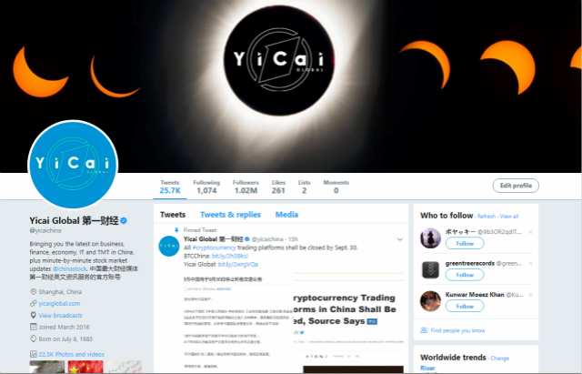 9月6日,推特粉丝数突破100万!这是“一财全球”一周岁生日收到的最好的礼物。