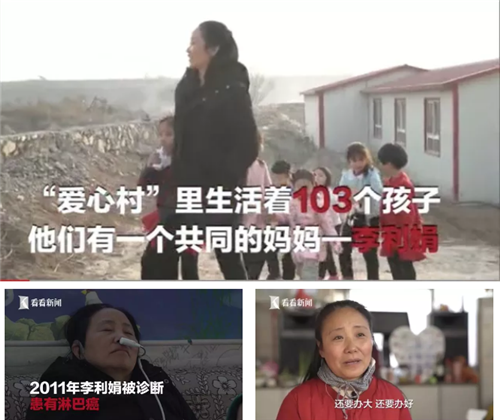 女矿主李丽娟散尽家财收养病残孤儿,办起“爱心村”,成了103个患病孤儿共同的母亲,即便身患淋巴癌,她还是竭尽所能给孩子们家的温暖。她说:“爱心村不仅要继续办下去,还要办大、办好。”
