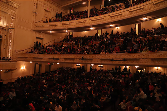 从纽约到波士顿,每场演出剧场内都座无虚席,尤其是纽约林肯艺术中心的三场演出票早在开演前两周即售罄,周末场更开放了高层加座。大幕开启,当悠远乐声奏响,人鹮共处、和谐共存的唯美画面立即抓住了观众的视线。随后近2小时的演出,场内的掌声此起彼伏、不绝于耳,这部作品以其温婉灵动的中国式审美呈现,征服了见多识广的美国观众。
