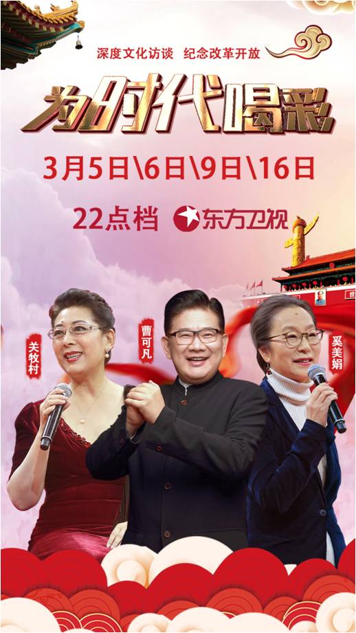 2018年正值改革开放四十年,四十年来中国社会发生了翻天覆地的变化。东方卫视于全国两会期间推出的纪念改革开放四十周年特别访谈节目《为时代喝彩》,由全国人大代表曹可凡及主持人王冠担纲主持。