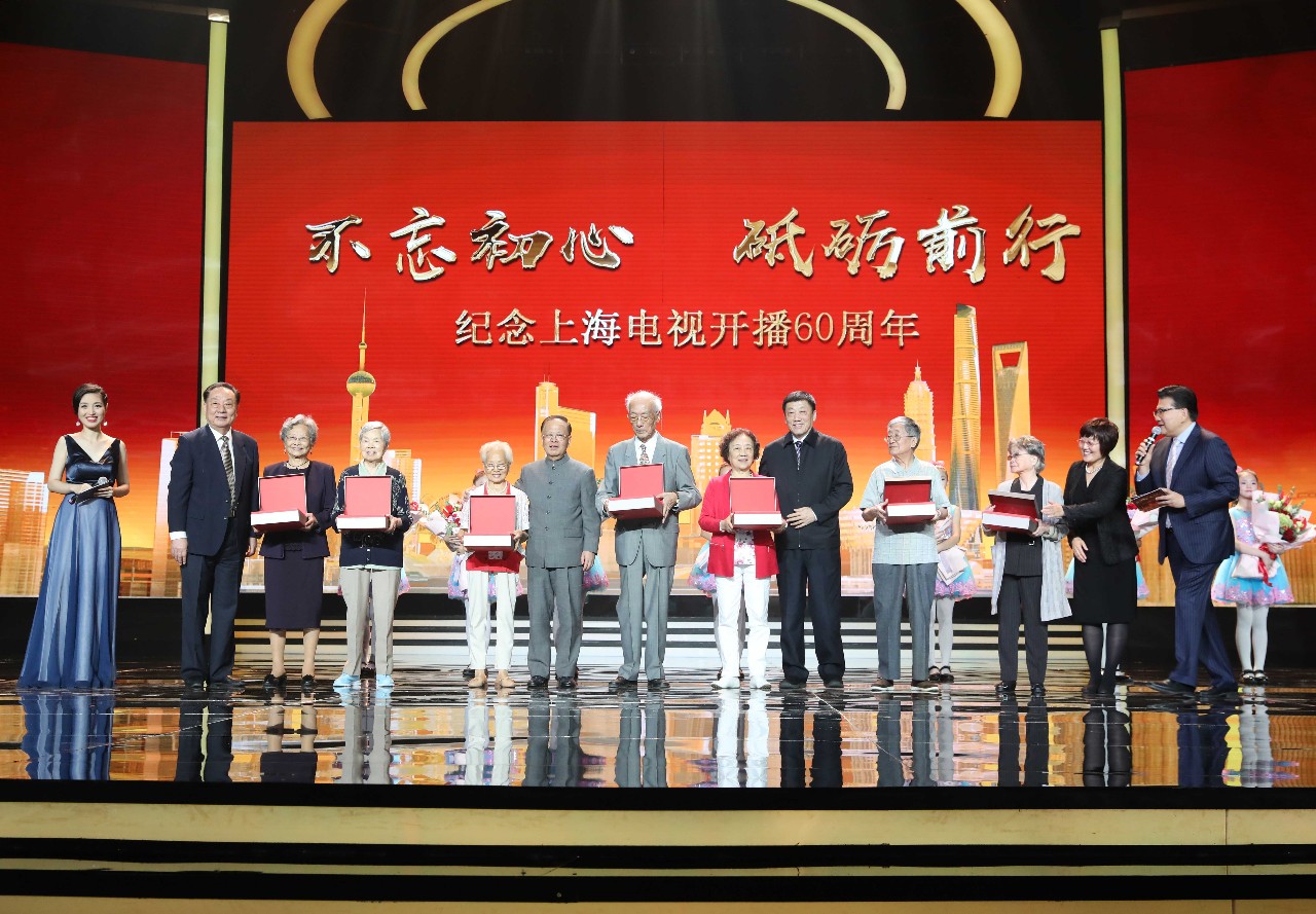 上海电视的老领导龚学平为7位元老颁发了上海电视60周年纪念品。电视前辈们深切表达了对SMG未来发展的美好期盼,现场新老电视人互动交流,令人感动。