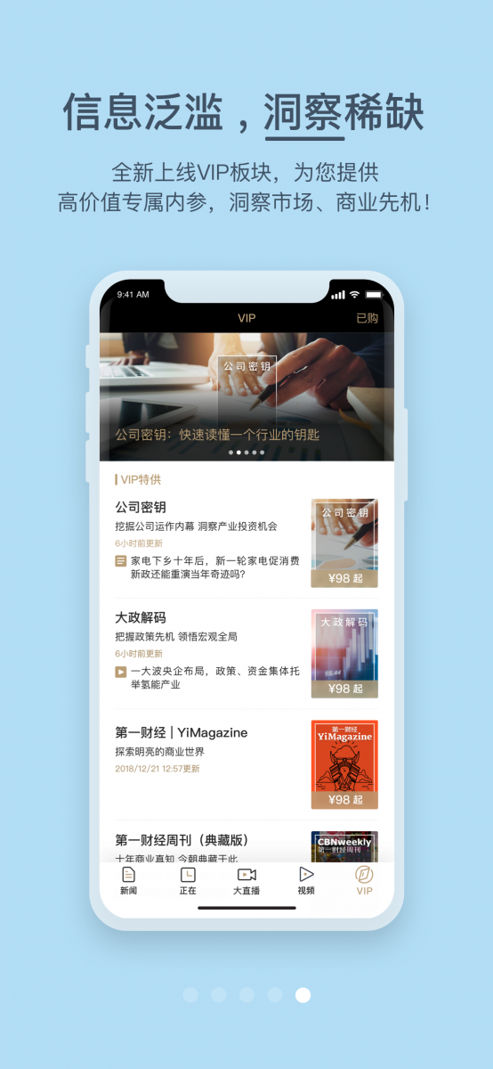 借助第一财经高价值财经内容,财经新闻、财经视频、财经直播、财经分析和评论在这里产生化学反应。第一财经全媒体平台上的深度内容将优先进入付费产品,成为高端用户重要的决策参考。