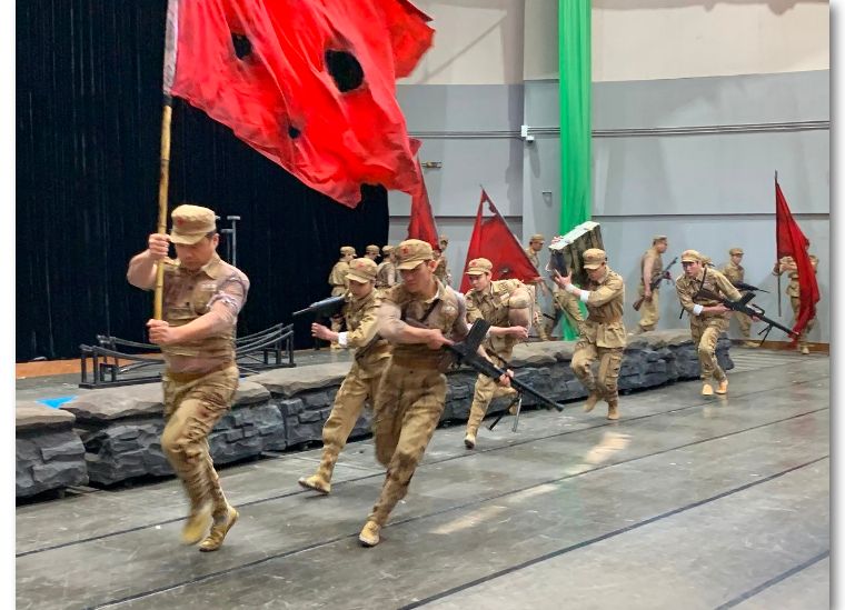 据悉,全剧采用了17个保留和新创节目,涵盖了杂技、魔术、滑稽等样式,创新了9种全新的表现形式,并在杂技技巧、道具上都进行了重大的改革创新,以海派杂技特有的富有惊险和张力的肢体语汇,多维度、立体地艺术再现了战斗时的壮烈场景和气势恢宏的战争场面,综合“声”、“光”、“电”、“影”、“景”等现代舞美科技的运用,努力呈现一部舞台战争大作,使观众直观地感受到舞台视觉带来的澎拜冲击和海派杂技的与众不同,让观众体验到不同凡响的舞台艺术效果。