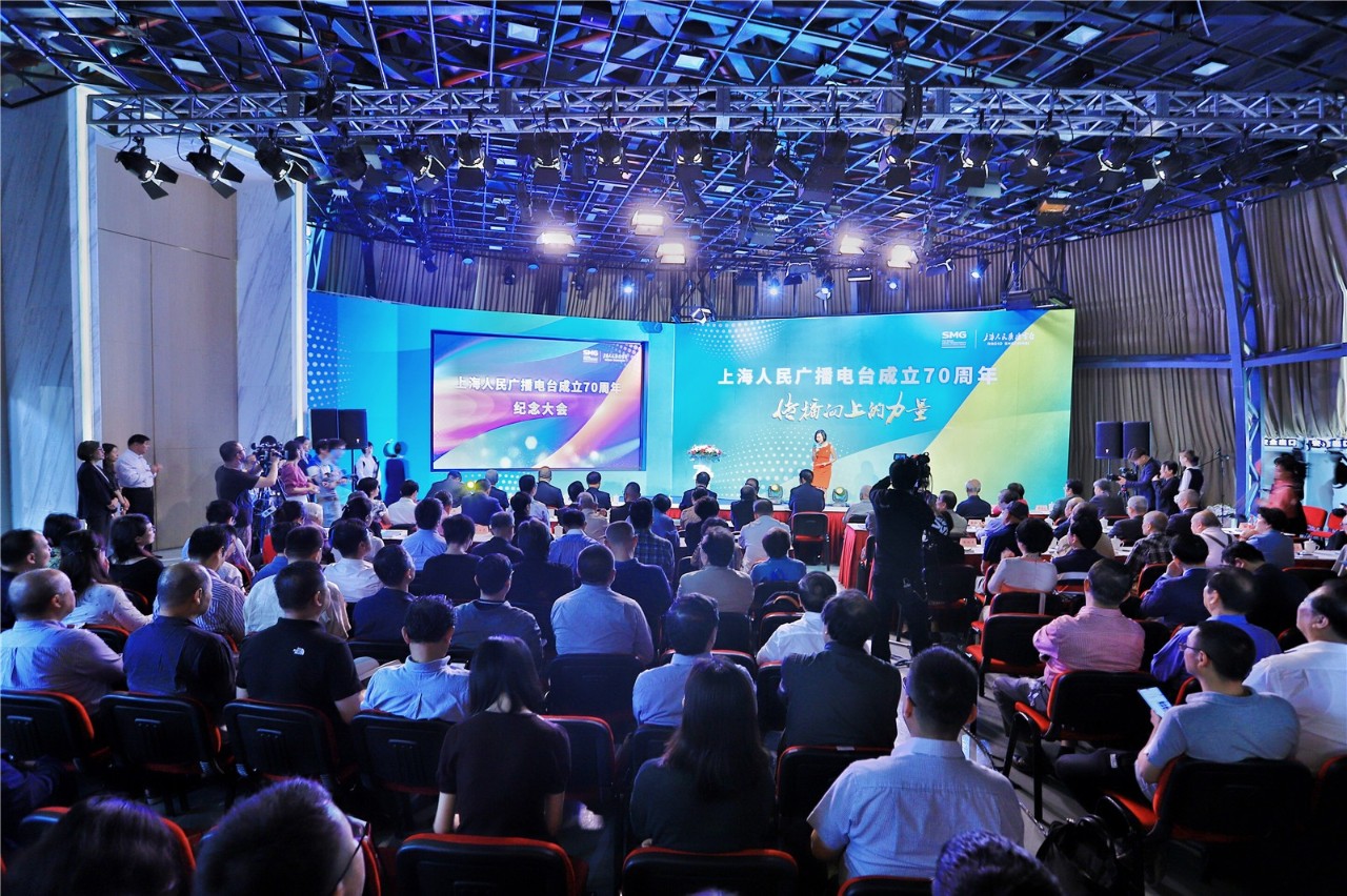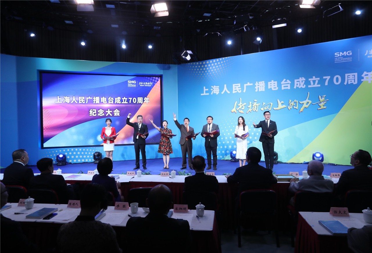 5月27日,上海人民广播电台在位于虹桥路1376号的广播大厦举行成立70周年纪念大会。老中青三代上海广播员工代表齐聚一堂。