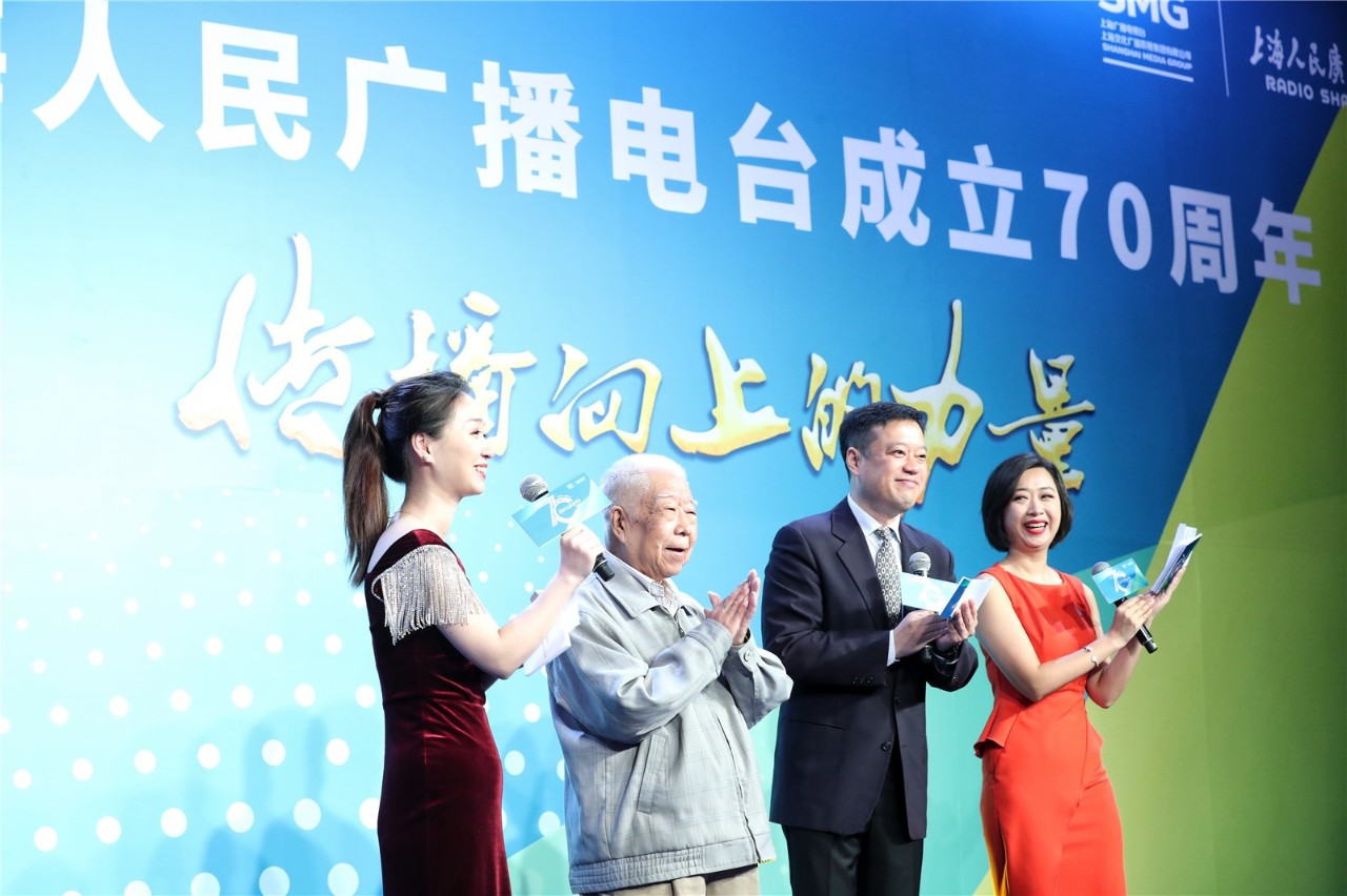 93岁高龄的上海人民广播电台老台长高宇的登台,引发现场热烈掌声,当他从上海广电的老领导龚学平手中接过象征上海广播三处地址变迁的立体剪纸纪念相框时,面对台下一张张年轻的面孔,高宇动情地说:“我在广播的怀抱中成长,广播是我的老师,是我的朋友,是我的亲密伙伴,我离不开广播。祝福上海广播在新时代里,奏出更美好的乐章,传扬四方!”