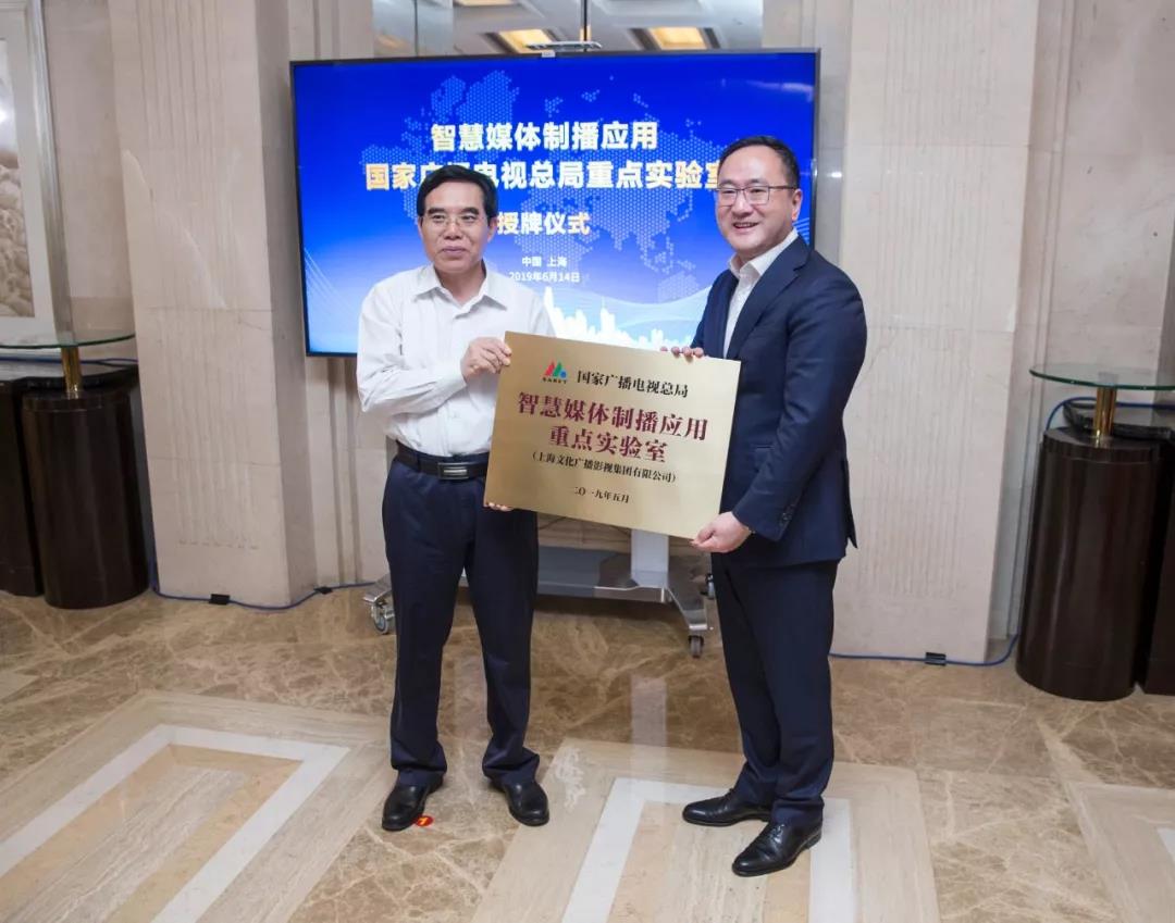 为贯彻落实国家广播电视总局关于加快全媒体建设、广播电视智能化发展的有关要求,推动广播电视制播应用与人工智能深度融合发展,国家广电总局在上海文化广播影视集团有限公司设立“智慧媒体制播应用国家广播电视总局重点实验室”。6月14日,授牌仪式在上海衡山宾馆举行。中宣部副部长、国家广播电视总局党组书记、局长聂辰席向上海广播电视台台长、上海文化广播影视集团有限公司总裁高韵斐授牌。这是国家广电总局首个在省级广播电视台设立的智慧媒体制播领域重点实验室。