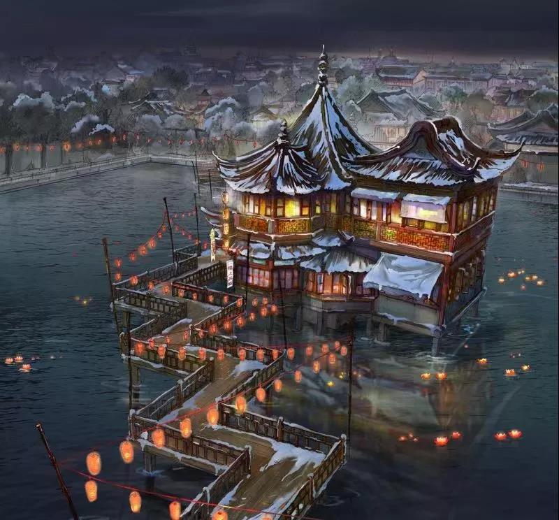 《江南》主打国风审美路线,在策划之初,主创团队就在寻求美术风格上的突破,尤其是“军工机械”一出,从字面上就透着冷硬感。为中和冷硬的军工风,主创者用浓郁的东方审美情趣来做调和——师徒情是故事线索里的东方哲学;上海豫园灯会、九曲桥上点点星光、龙腾舞跃是历史人文里的东方景致;而用模拟洗涤过的艳丽涂料,渲染出旧而不破、带有幻想色感的画风,则是视觉上的东方呈现。