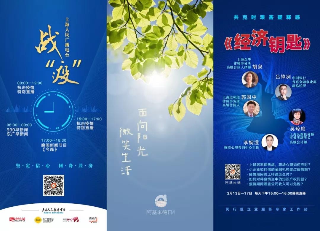 上海新闻广播《活过100岁》《十万个为什么》、899都市广播《名医坐堂》节目将邀请医学专家就听众关心的疫情相关问题进行权威信息发布和解读,并录制推出一批《听专家说》短音频。《活过100岁》还将继续在阿基米德社区“空中问诊”专栏,邀请专家全天候24小时线上解答听众提问。899都市广播从2月17日起,每晚20:00-22:00推出心理疏导专题直播《899心相伴》,梦晓、沈蕾将与听众实时互动,线上线下联动,打造疏解、减压平台。阿基米德APP推出《守护天使电台》医护版和大众版,提供及时、专业的心理疏导。话匣子APP推出“疫”起过日子系列漫画-短视频,请到中国心理疏导心理发展研究中心专家支招,打败焦虑与恐慌。