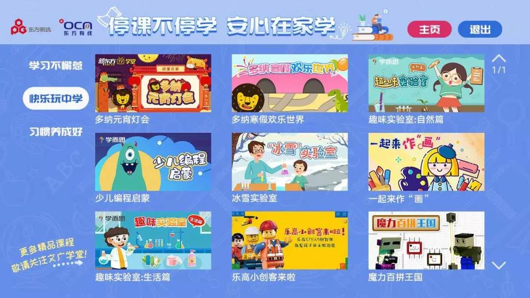 东方明珠IPTV、OTT、东方有线等多渠道联合上线“停课不停学,安心在家学”教育产品。百视通“百视教育”、文广互动“文广学堂”携手新东方、学而思等20余家国内知名教育品牌,为广大中小学生提供全方位电视寓教于乐平台。产品内容涵盖0至18岁全龄段30000余节线上精品课程。