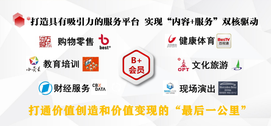 我们正在构建的“B+会员”服务体系就是要真正实现对SMG产业版本中这些多品类服务的资源共享、权益互通、统分协同、交叉赋能,与在线新经济充分结合,打造全方位的“品质生活”服务体系,释放SMG在传统媒体业务之外的其他业务能量,打通价值创造和价值变现的“最后一公里”。我们将把常规所描述的SMG产业门类最多、产业规模最大的这一特点,充分地实现最大价值释放,来补充传统媒体业务在当今挑战下所不能够完全实现的产业变现。
