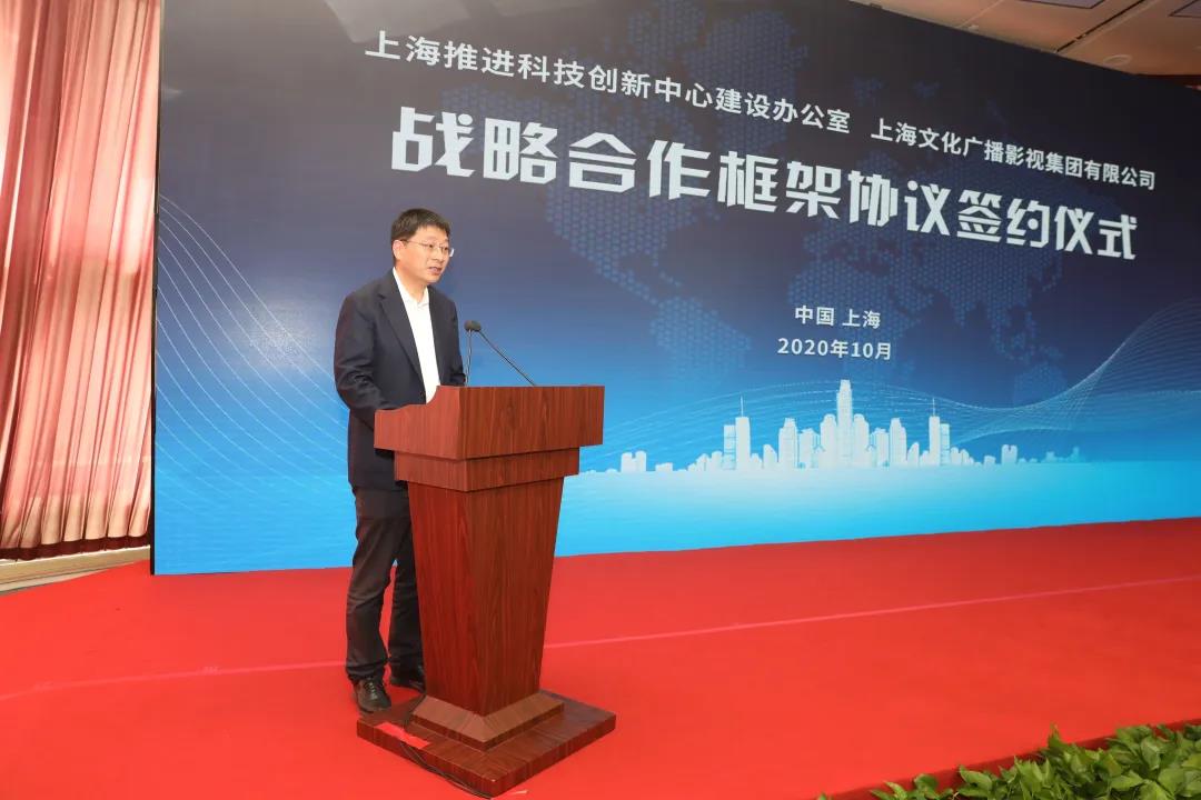 宋炯明在致辞中表示,SMG当前正处在媒体融合转型发展的关键时期,也正在稳步推进以“内容+服务”双核驱动打造5G时代应用平台的“BesTV+流媒体战略”,衷心希望得到上海科创办多方面深入的指导和长期的支持。同时SMG也将充分利用旗下电视、广播、互联网新媒体等优势资源,精心组织策划,全方位宣传报道,推动上海向全球推介交流科创中心建设成果和发展规划,不断提升科创中心的集中度、显示度和美誉度。